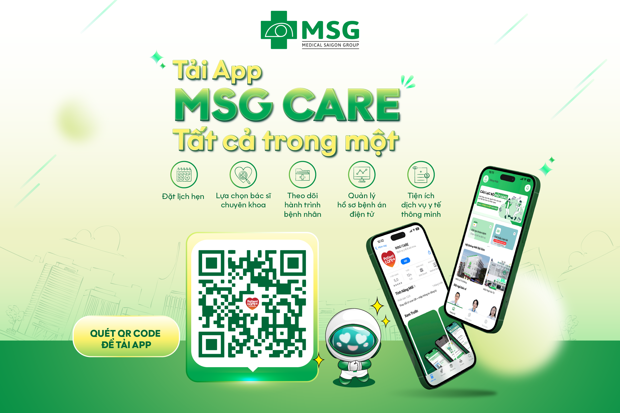 Ứng dụng MSG CARE là một phần trong nỗ lực cải tiến của Hệ thống Bệnh viện Mắt Sài Gòn nhằm ứng dụng công nghệ để nâng cao chất lượng dịch vụ và trải nghiệm khách hàng. Hãy tải ứng dụng ngay hôm nay để trải nghiệm sự thuận tiện và chủ động hơn trong việc chăm sóc sức khỏe của bạn và gia đình.